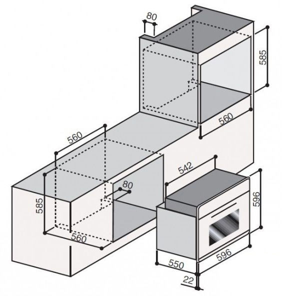 Размеры ниши для встраивания (ВхШхГ): 58.5 х 56 х 56 см
