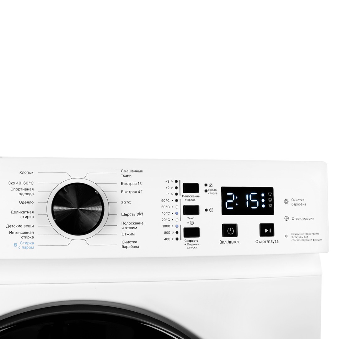 - Функция пара: функция обработки паром позаботится о ваших вещах и при этом справится с самыми стойкими загрязнениями и уничтожит 99 % бактерий. Пар, проникая в волокна ткани, cмягчает ее и дезинфицирует.
