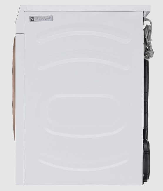 Сушильная машина белого цвета с эксклюзивной медной отделкой, максимальной загрузкой 10 кг и технологией сушки Heat pump сочетает в себе лаконичный дизайн и передовые технологии.