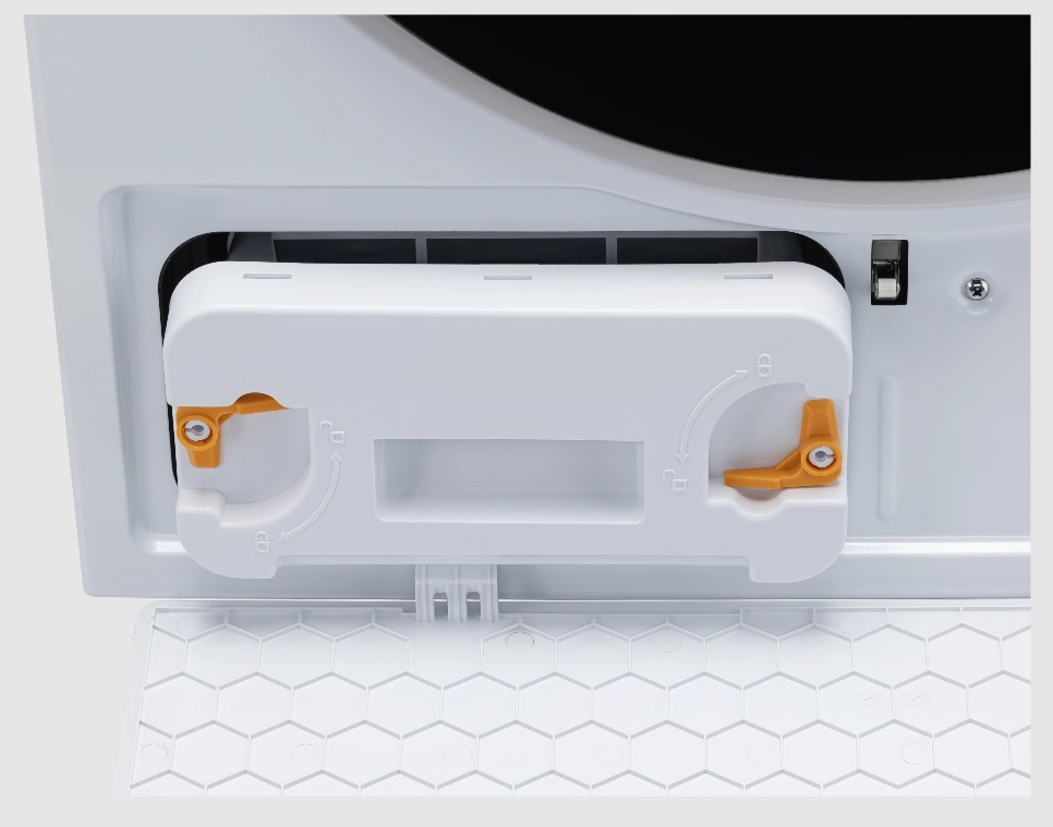 Четырёхступенчатый фильтр собирает пыль, ворсинки и остатки ниток из белья и одежды. Первый этап — фильтр высокой плотности для сбора волос и ниток, второй этап — внешний фильтр, третий этап — внутренний фильтр, четвёртый этап — поглотитель пыли до 0,5 микрона. Таким образом, он очищает одежду от пыли и ворса, предотвращая их распространение по дому.