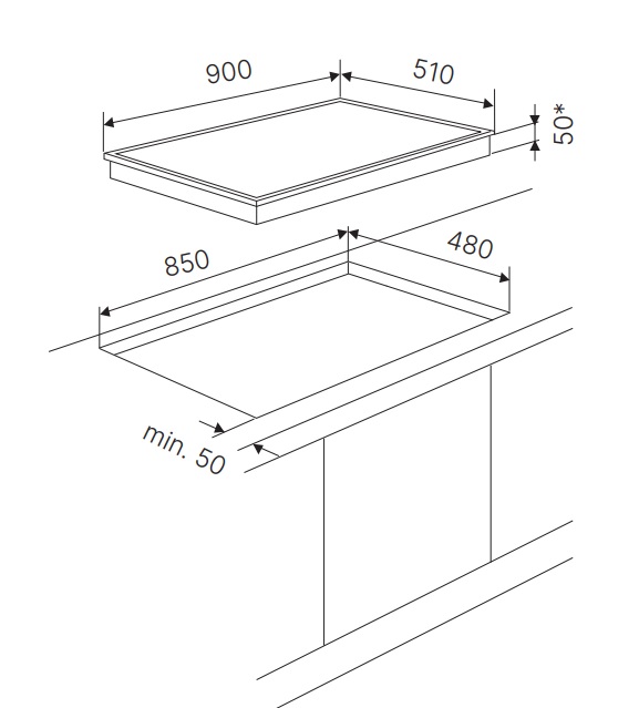 - Габариты ВхШхГ, мм: 50х900х510